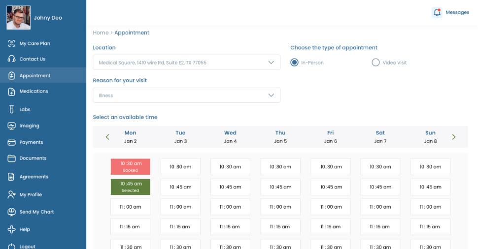 Streamlined clinic registration for services, facilitating easy access to required medical assistance for patients in a single, seamless process.